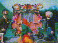 "The Song of the Fair" Hurry up, hurry up gather around. Music and laughter are here to be found. Now is the time for a breath of fresh air. Come and enjoy all the fun of the fair. Side shows and swings there's so much to be seen. Old friends from Trumpton and Camberwick Green. Everything pleases and nothing dismays, As the music so merrily plays. From the Come To Chigley record Chigley is a tiny hamlet near Trumpton and Camberwick Green. But for Winkstead Hall, one could drive through it without noticing its existence. Winkstead Hall is of course, the stately home of Lord Belborough. It is extremely difficult to run these days, so Lord Belborough has had to turn into a showman, like so many of his fellow peers. Bessie the steam railway engine is his Lordship's pride and joy. He bought up a disused Bluebell-line type railway, converted part of Winkstead Hall stables into an engine shed, and rerouted the track. The public enjoy rides fron Winkstead Hall, past the Pottery and Biscuit Factory to Treddle's Wharf, to be greeted by Mr Swallow, the wharfinger, who is always ready to demonstrate how quickly he can unload Mr Rumpling's barge. Another favourite attraction is the Six-o'clock Dance, held every evening in the grounds of Winkstead Hall. It is attended mainly by the factory workers from Mr. Cresswell's Biscuit Factory, who pour out of the factory when the six o'clock whistle blows. The music is provided by Lord Belborough, assisted by Mr. Brackett, the Winkstead Hall Butler, turning the handle of the Dutch organ. |